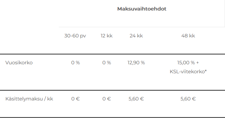 * Valittavana jopa 12 kuukauden koroton ja kuluton maksuvaihtoehto